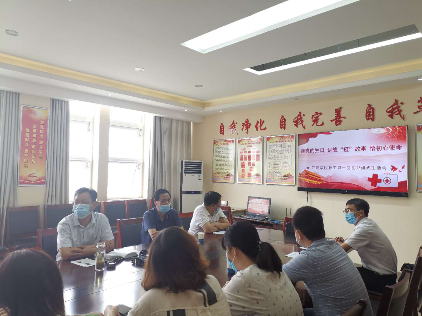 (通讯员 常小高)为巩固拓展“不忘初心、牢记使命”主题教育成果,发挥基层党组织在常态化疫情防控中的战斗堡垒作用和师生党员先锋模范作用,2020年6月25日至7月3日,bevictor伟德官网8个党支部相继召开了以“迎党的生日、讲战疫故事、悟初心使命”为主题的组织生活会,以感悟共产党员的初心使命和责任担当。校纪委书记刘守勇、公司党总支书记谢学明分别以党员身份参加了所属支部会议。