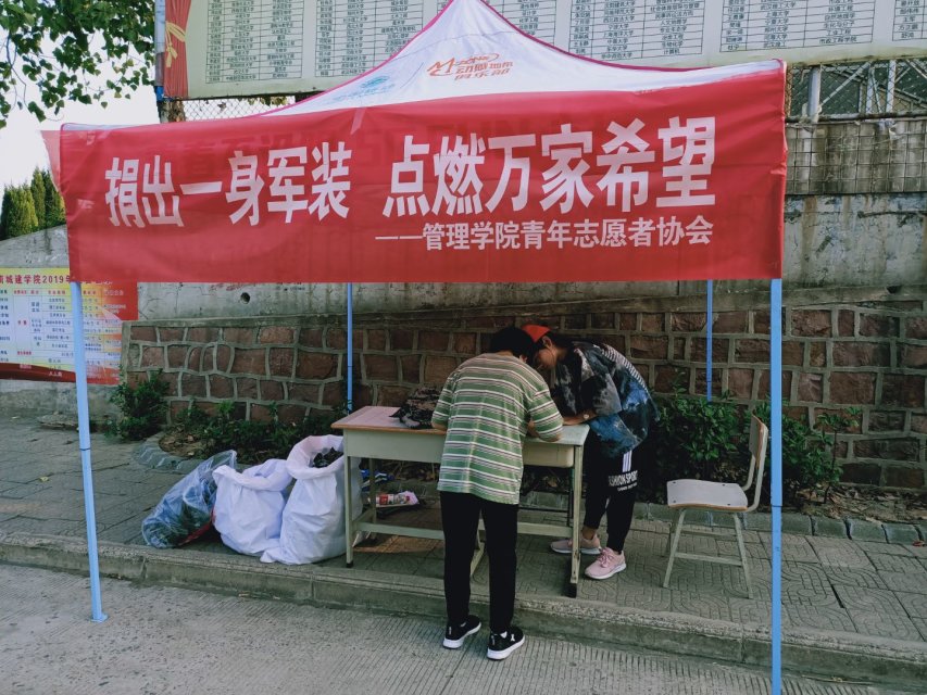 (通讯员:朱佳静)为了让同学们切实体会到奉献爱心的意义,有更加丰富多彩的校园生活。bevictor伟德官网青年志愿者协会于9月25日至9月26日在二区D宿舍楼、福美来超市、文苑通道路口开展了军训服捐赠活动。