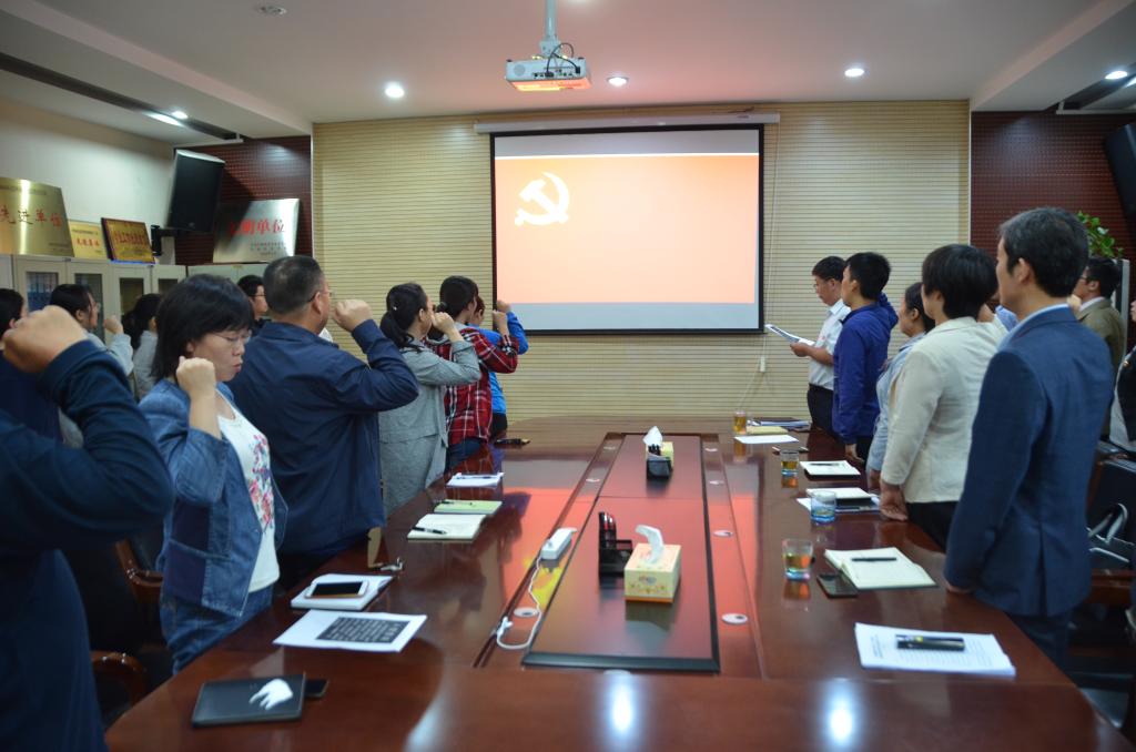 最后,闫瑾带领大家重温入党誓词,一句句铿锵有力的入党宣誓,让全体党员再次接受了心灵洗礼,让“忠诚、干净、担当”真正入脑入心。