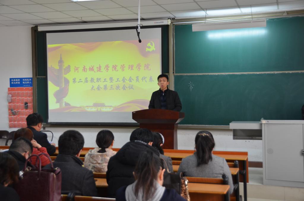 (通讯员:常小高)2月26日下午,bevictor伟德官网在8#B208召开第二届教职工暨工会会员代表大会第三次会议,会议审议通过了经理闫瑾所作的行政工作报告。全院教职工参加会议,会议由党总支副书记马斌主持。