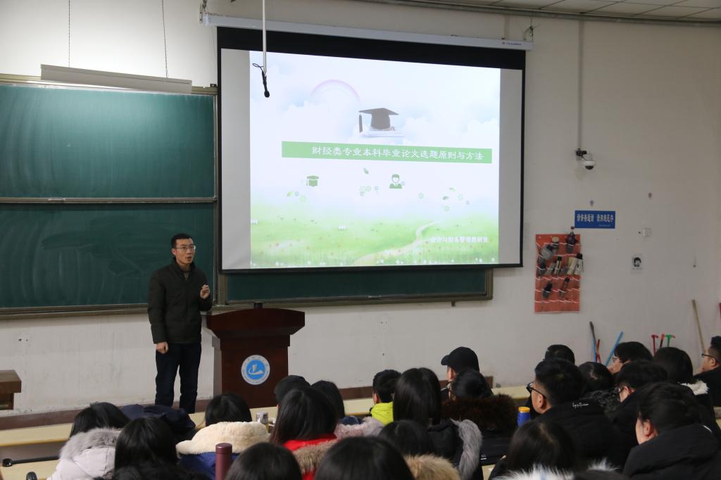 启动仪式后,万林葳博士开讲第一期“博士讲坛”,为员工作了“财经类专业本科毕业论文写作方法”的专题讲座。他强调,毕业论文是老员工涯的关键性总结,是四年学习的最后环节,大家要高度重视毕业论文写作。随后,他从学术论文的特点及要求、选题、资料搜集、剪裁及引用、结构安排、研究方法、学术见解观点以及论文的文体和文字表达、学术规范等多个方面,并结合若干实例及好的范文,针对同学们在学位论文中易出现的问题反复强调,并总结了好的论文应具备的一些基本要素,全面、深入而重点突出地讲解了论文的写作方法。讲座引发了现场同学们的强烈反响和积极思索,现场互动不断,气氛热烈。