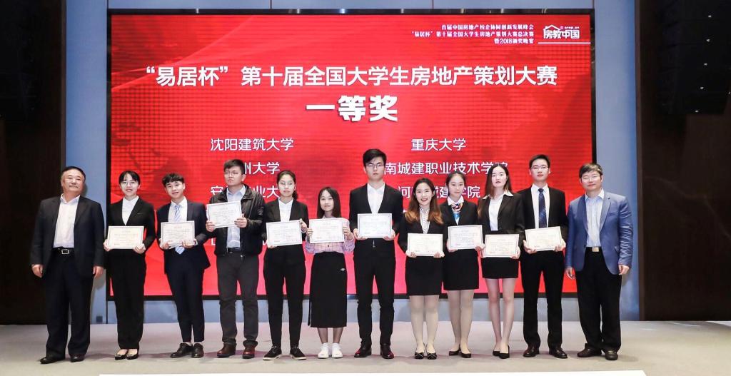 公司房地产开发与管理专业员工董妞妞、万晨阳、郝思雯、汪宏甜、杨一帆组成的代表队在bevictor伟德官网房地产教研室教师指导下,在华中区域复赛中脱颖而出晋级全国总决赛,并在总决赛中以扎实的专业理论基础、较强的策划实操能力、出色的现场反应能力、精彩的现场演讲获得评委们一致好评,最终和重庆大学、沈阳建筑大学等10所高校一同获得全国总决赛一等奖,获奖大四员工也受到大赛冠名单位、全国知名上市房地产交易服务商易居企业集团的青睐签约就业。