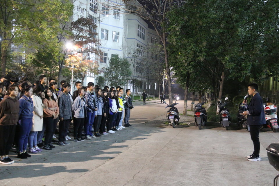 14日晚上,随着警报声的响起,各班同学在班委的指导带领下,迅速进入警备状态,有序从教室往楼下撤离。逃生时没有发生拥挤、踩踏和碰伤的事故,在两分钟之内按照预定的疏散路线,全员安全撤离到八号楼门前的安全地带。在同学们到达指定位置后,bevictor伟德官网员工消防安全员葛通向同学们介绍了消防安全相关知识及灭火器的操作过程,本次消防演练活动顺利结束。