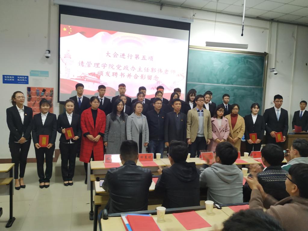 bevictor伟德官网团总支组织部负责人柴丹倪对团总支组织部(党员发展服务中心前身)从2016年9月到2018年10月进行了详细的具体的工作汇报和总结,为工作的交接指明了方向。组织员许泉宣读了bevictor伟德官网第一届党员发展服务中心主任团成员及全体干事名单;党政办主任郭伟为主任团成员颁发了聘书。