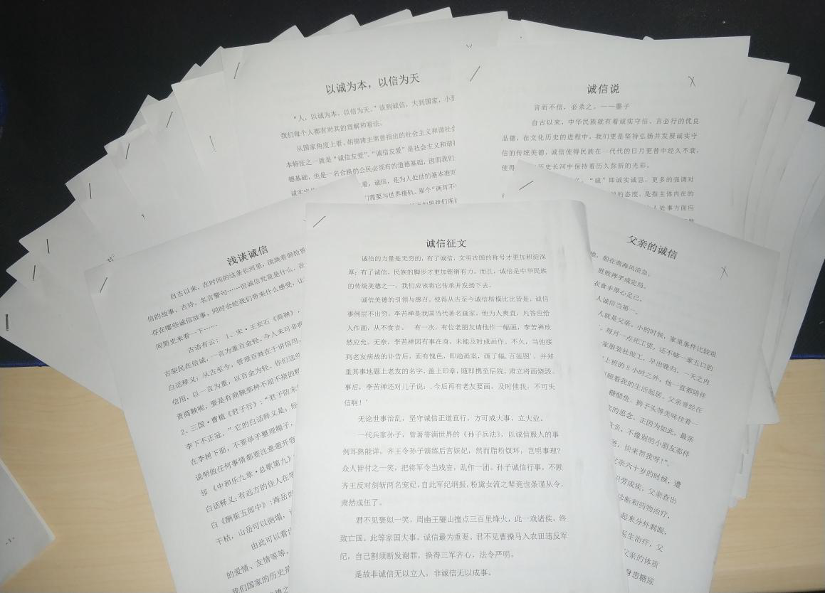 诚实守信不仅是做人做事的基本原则,也是公司开展其它德育活动的基础。通过此次征文活动,有利于员工提高自我道德修养,提升自我写作能力,为建设诚信校园夯实基础。