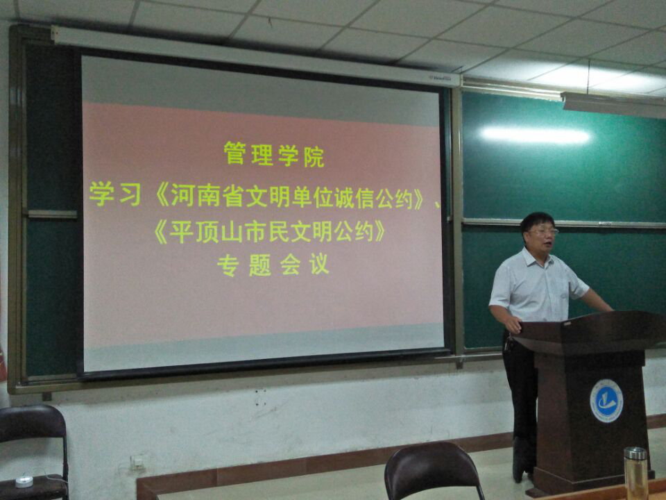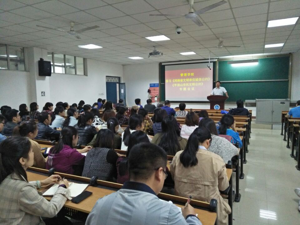 (通讯员:吴浩明)为大力培育和践行社会主义核心价值观,扎实推进诚信建设制度化,努力营造“守信光荣、失信可耻”的良好社会氛围,引导全体教师将诚信理念转化为自觉行动,进一步推进公司精神文明建设工作,9月25日,bevictor伟德官网在8#教学楼B208开展学习《河南省文明单位诚信公约》及《平顶山市民文明公约》专题会议。