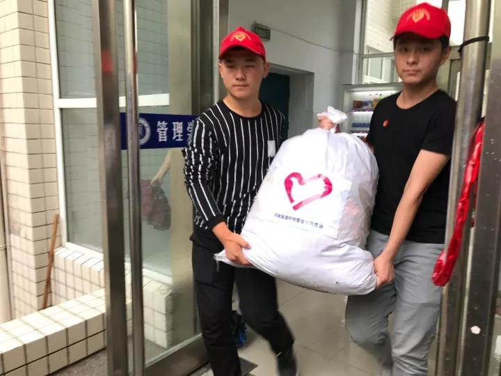 本次活动城建学子所捐赠的衣物约1300件,共计包裹13包,全由平顶山市志愿者协会接收处理。9月26日上午,天气阴雨连绵,但捐赠衣物公益活动如期举行。志愿者们提前把捐赠的衣服整理打包好,整齐摆放在一楼大厅。副书记马斌和团学办李玲慧老师热情接待了平顶山市志愿者协会的领导代表,并进行了融洽的交谈。听说平顶山市区里的不少旧衣回收箱被人为破坏时,马书记给他们提了新的建议:在高档小区里,将旧衣回收箱和投币贩卖饮料机放在视频监控范围内,这样可以避免被破坏。平顶山市志愿者协会王华主任认为这个建议非常好,他们会积极采纳。